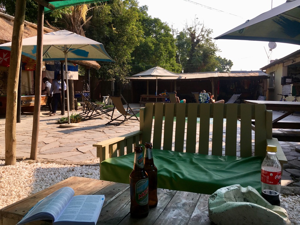 After almost 24 four hours of bus-flight-stop-over-flight-taxi we finally arrive in Lusaka and enjoy our first local beer Mosi!