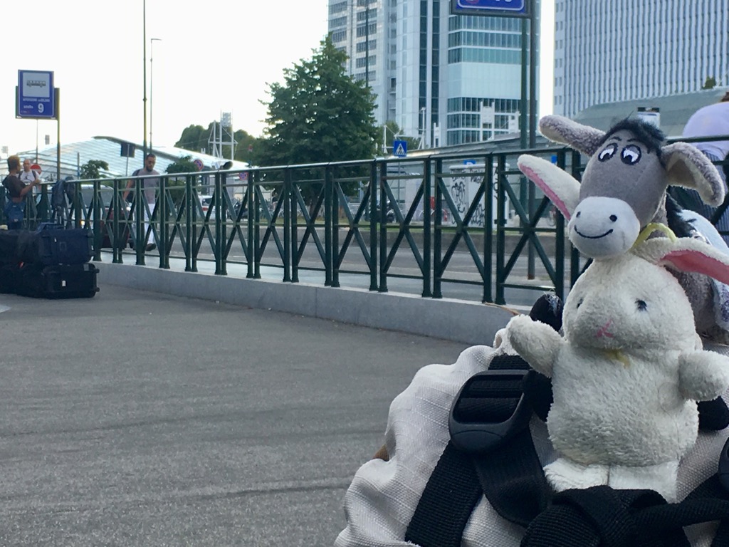 Me (the Donkey) and Valeria (the Rabbit) waiting for the bus to Malpensa Airport at Porta Susa Station Torino. 24 for hours from now we will find ourselves